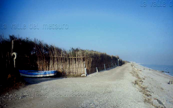 La spiaggia è ghiaiosa, per l'apporto di sedimenti provenienti dal Metauro.