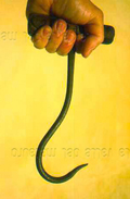 DESCRIZIONE: uncino di ferro, lungo 25 cm, munito di manico in legno.