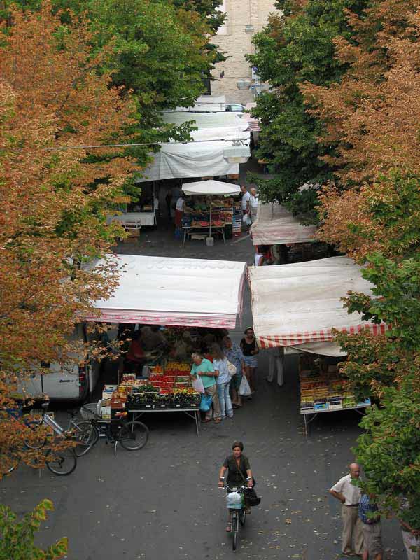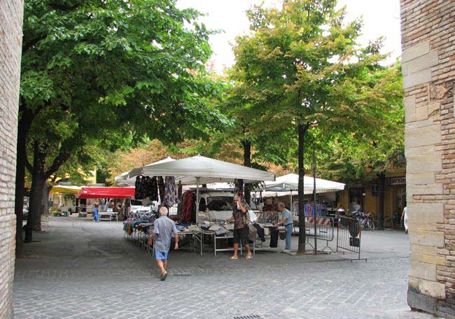 Nella piazza tutti i giorni numerose bancarelle espongono frutta, verdura, generi vari riguardanti la casa e vestiario.