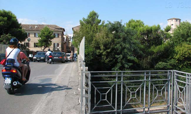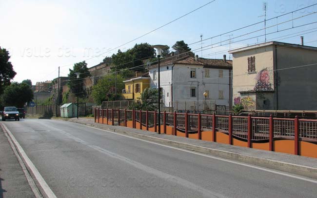 Nella foto del 2007 la situazione è molto cambiata: la Rocca Malatestiana è priva del mastio (abbattuto nel 1944 per eventi bellici) e oltretutto è seminascosta da case ed alberi; anche il ponte ferroviario è parzialmente nascosto dal contiguo ponte percorso dalla strada Via Spontini - Via Gentile da Fabriano. E' ancora presente l'edificio del casello ferroviario, senza più numero ma con murales sulle pareti.