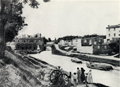 La cartolina, del 1940 circa, mostra la stessa zona della foto di inizio secolo, ma già le demolizioni e il riempimento del canale sono avvenuti e in più sulla sinistra è stata costruita una villa circondata da pini al posto dell'edificio abbattuto. La didascalia recita: Fano - tre civiltà e tre stili: Roma, il Quattrocento, il Novecento.