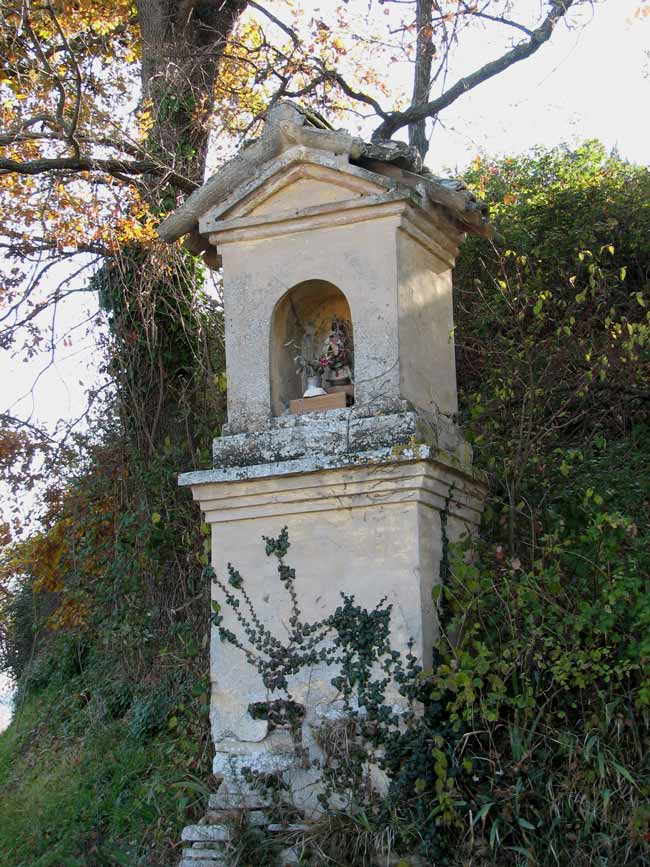 Il piccolissimo agglomerato di case, stretto attorno alla Chiesa di S. Michele Arcangelo, sorge sulla cima di una collina a 348 m di quota. Comprende, oltre alla chiesa, due case padronali in pietra calcarea a vista da poco restaurate, una viuzza e l'edificio dell'ex scuola rurale.