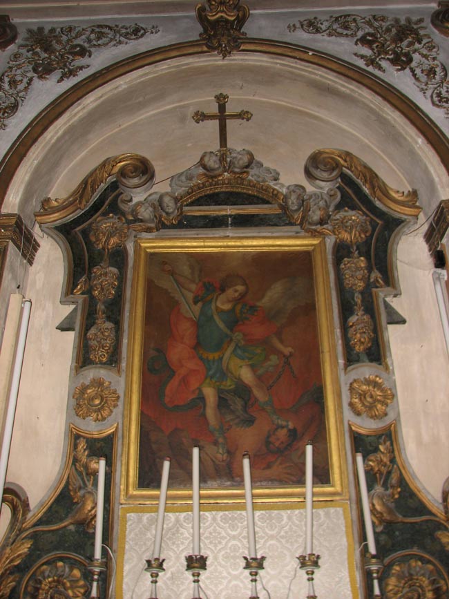 La chiesa è dedicata a San Michele Arcangelo. Quella attuale è del secolo XVIII, ma successivamente è stata rimaneggiata: la facciata in conci di pietra, ad esempio, è stata rifatta nel secolo scorso. Dello stesso periodo è la cappella della Madonna di Lourdes, la cui grotta è stata formata con massi porosi prelevati da un anfratto posto ai piedi della stessa collina di Caspessa in prossimità del Tarugo.