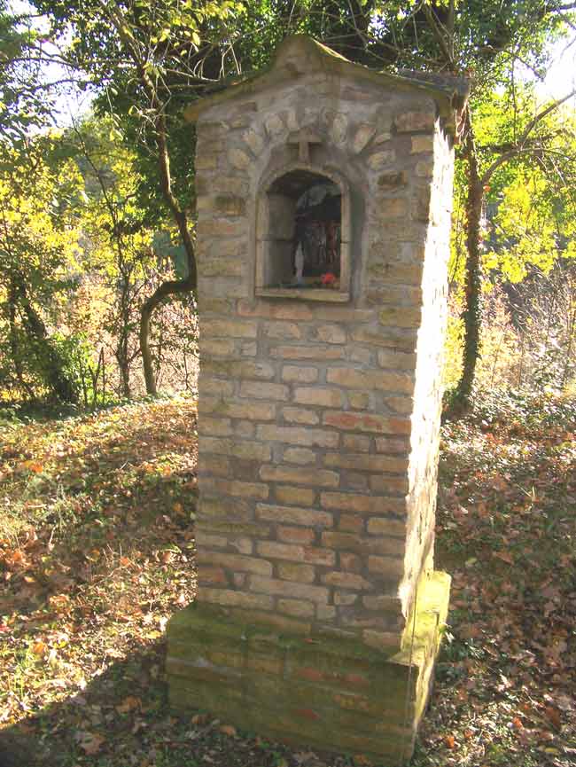 Più in basso, ai margini della strada che portava a Fano, è posta l'edicola del Castello di Montegiano, costruita dove sorgeva la chiesa del castello (chiesa della SS. Trinità e, ancor prima, S. Maria in Scotaneto).