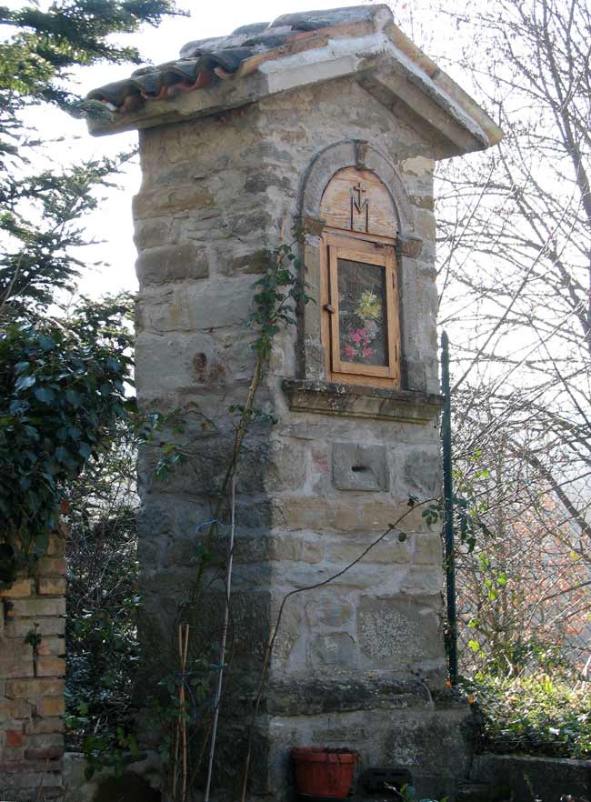 Sulla vicina parete rocciosa è visibile un anfratto adattato con una rozza muratura, detto Grotta di S. Ubaldo poichè la tradizione vuole che nel 1100 vi dimorasse il Santo vescovo di Gubbio, seppur saltuariamente data l'esiguità del ricovero.