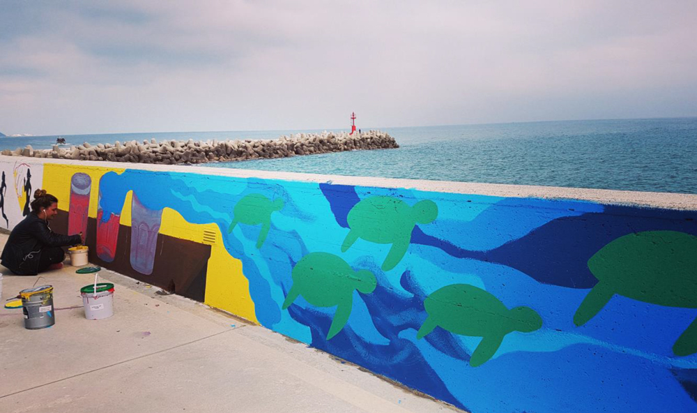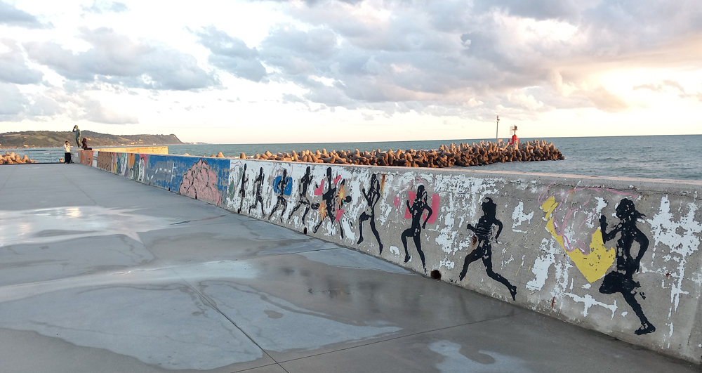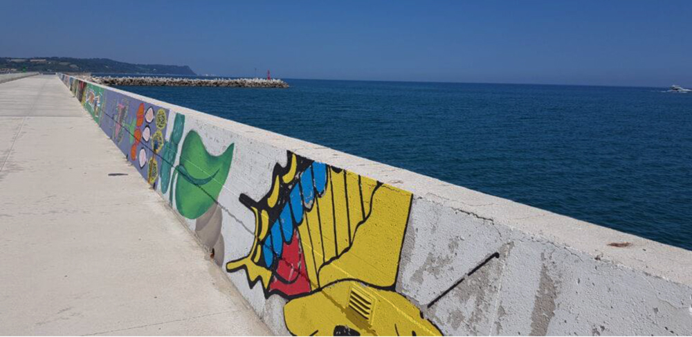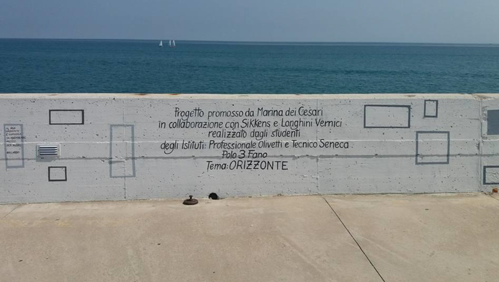 Marina dei Cesari grazie all’impegno e alla creatività di 49 studenti dell’Istituto Olivetti e dell’Istituto Seneca di Fano e dei loro insegnanti, inaugura oggi i murales ispirati al tema Orizzonte. Un nuovo impegno del porto turistico di Fano per dare nuova bellezza e unicità a un luogo magico sospeso sul mare come la Passeggiata del Lisippo.
