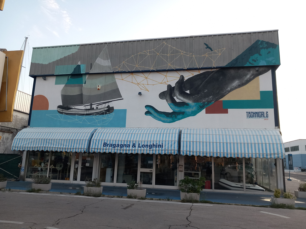 Murali sui capannoni di fronte al Pesce Azzurro nella zona del Porto (tratto in parte da: https://www.centropagina.it/pesaro/fano-porto-museo-cielo-aperto-murales/) Fano, maggio 2022: il porto come un museo a cielo aperto: al via i murales giganti - iniziano a prendere forma i murales su “Mare Lift” e “Bragagna”, i due capannoni di fronte al Pesce Azzurro legati all'ambizioso progetto "Porto Futuro". Gli artisti di stret art hanno iniziato nei giorni scorsi a lavorarvi, ed entro un paio di settimane le opere dovrebbero essere completate. Gli spunti consegnati agli artisti sono frutto di un ampio lavoro di condivisione e di confronto avviato con le categorie che operano al porto, il consiglio del bambini, le associazioni giovanili e le scuole. “Porto Futuro” è un percorso di riappropriazione sociale che fa leva su un processo di rigenerazione urbana e di riqualificazione degli edifici del porto mediante varie pratiche artistiche contemporanee. Gli autori dei murali sono Fede Zenobi e Nicola Canarecci.