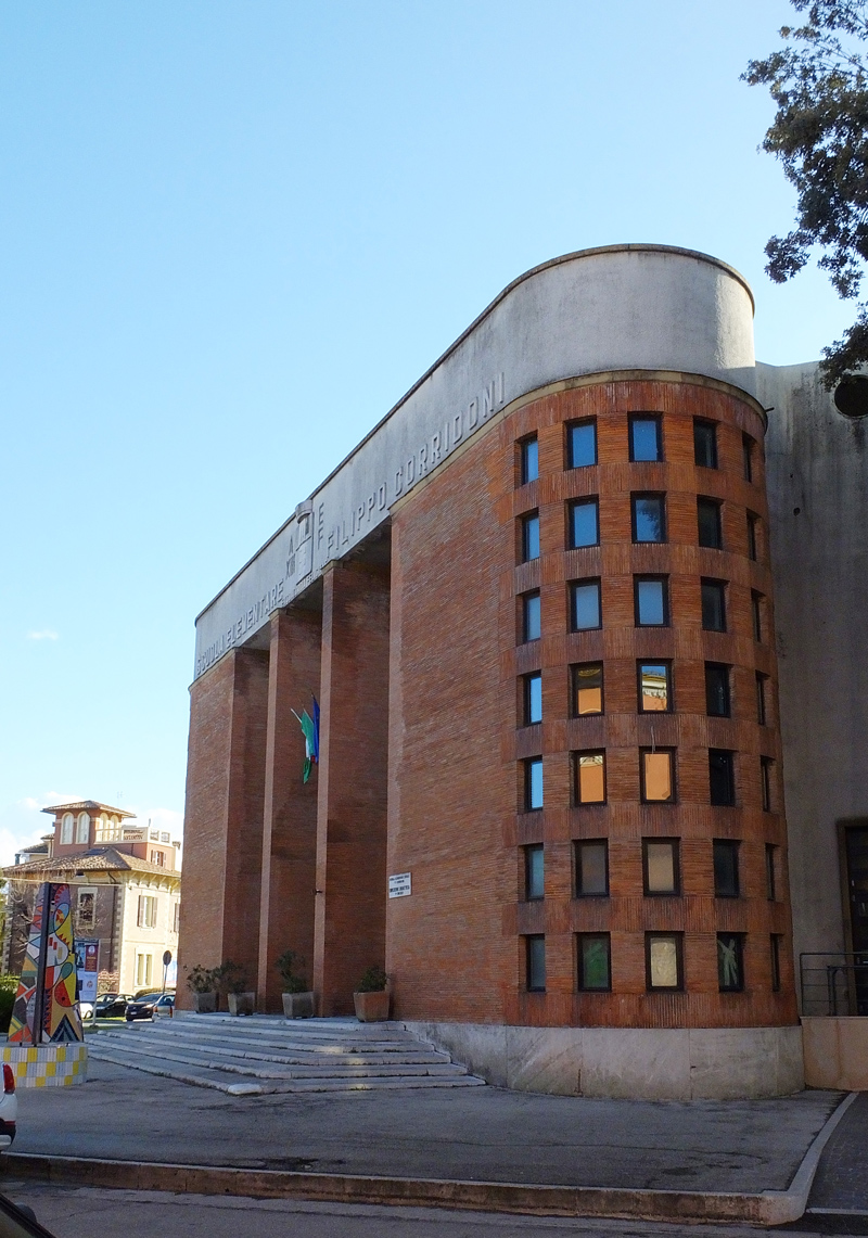 La Scuola Filippo Corridoni è stata costruita nel 1935 (anno XIII dell’Era Fascista, come si legge ancora sopra l’ingresso) nell’area prima occupata dal Foro Boario, con lo stile che viene definito di Architettura razionalista. L’ingresso è affiancato agli angoli da due corpi scale cilindrici. Filippo Corridoni (1887-1915) è stato un sindacalista, politico e giornalista a livello nazionale, morto durante la Prima guerra mondiale.