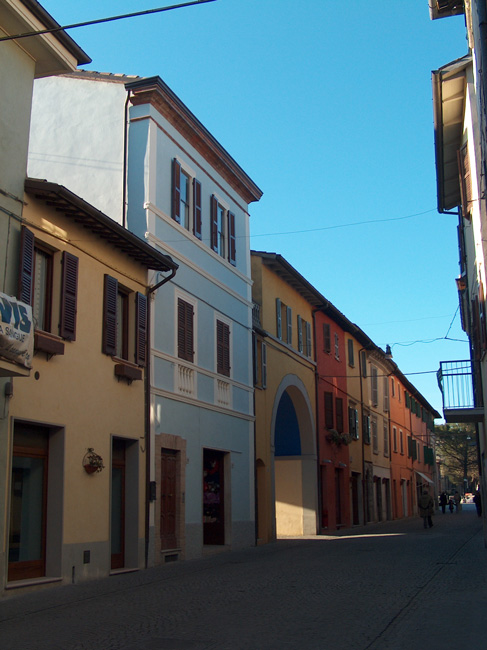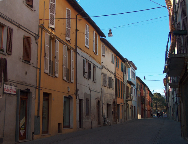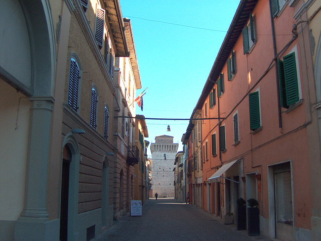 La via principale del centro storico è Corso Bramante, che collega la Torre a Piazza Garibaldi, attualmente la piazza principale della città. E' da vedere il portale di Palazzo Calistri, mentre nell'edificio attiguo si trova la "porta del morto", recentemente restaurata (1).