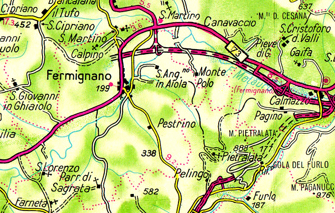 che partono dal Metauro fino a raggiungere la chiesa di S. Clemente di Pagino.