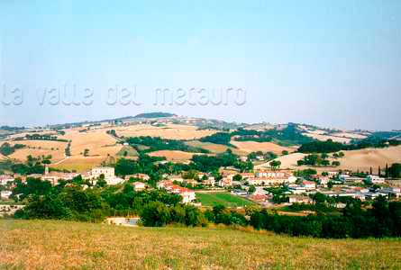 Il paesaggio è caratterizzato da una serie di case coloniche dislocate presso le pianure e i terrazzi alluvionali collocati lungo i tre percorsi d'acqua, delimitati da colline impropriamente denominate monti (Monte Aguzzo, Monte Celso, Monte Raggio) e dalle Cesane (m. 648).