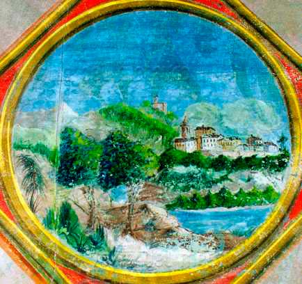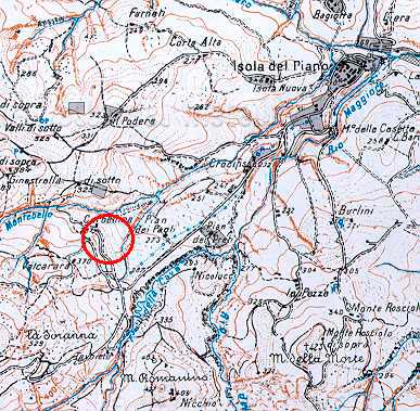 L'iscrizione recita: "Nell'anno 1284, indizione XII, sotto il pontificato di Papa Martino IV il sabato 8 luglio avvenne il totale incendio del Castello dell'Isola". Vari documenti dimostrano che dal 1300 Isola fece parte del "Comitatus Urbini", pertanto i duchi da Montefeltro ne avevano la feudalità (Bolla papa Bonifacio VIII del 12 maggio 1300, "Insulae Planesi" ed altri).
