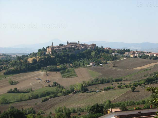 Il territorio per lo più collinare è quasi tutto sullo spartiacque del Cesano, ad eccezione dell'isola amministrativa di Cavallara sul versante del Metauro.