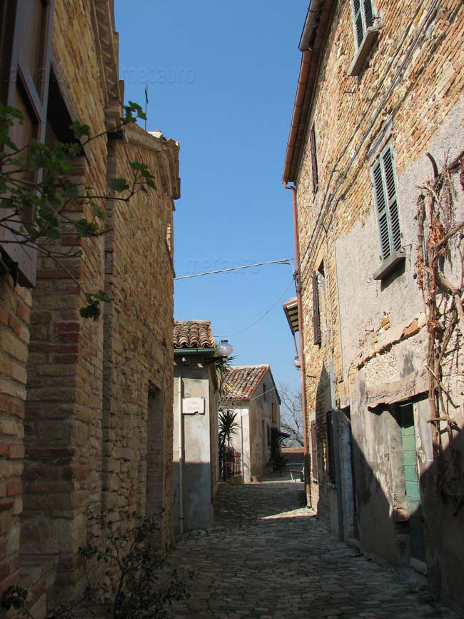 La campagna circostante è alberata e coltivata, proprio come quella dipinta da Francesco Mingucci agli inizi del XVII sec. per conto del Duca Francesco Maria II della Rovere.