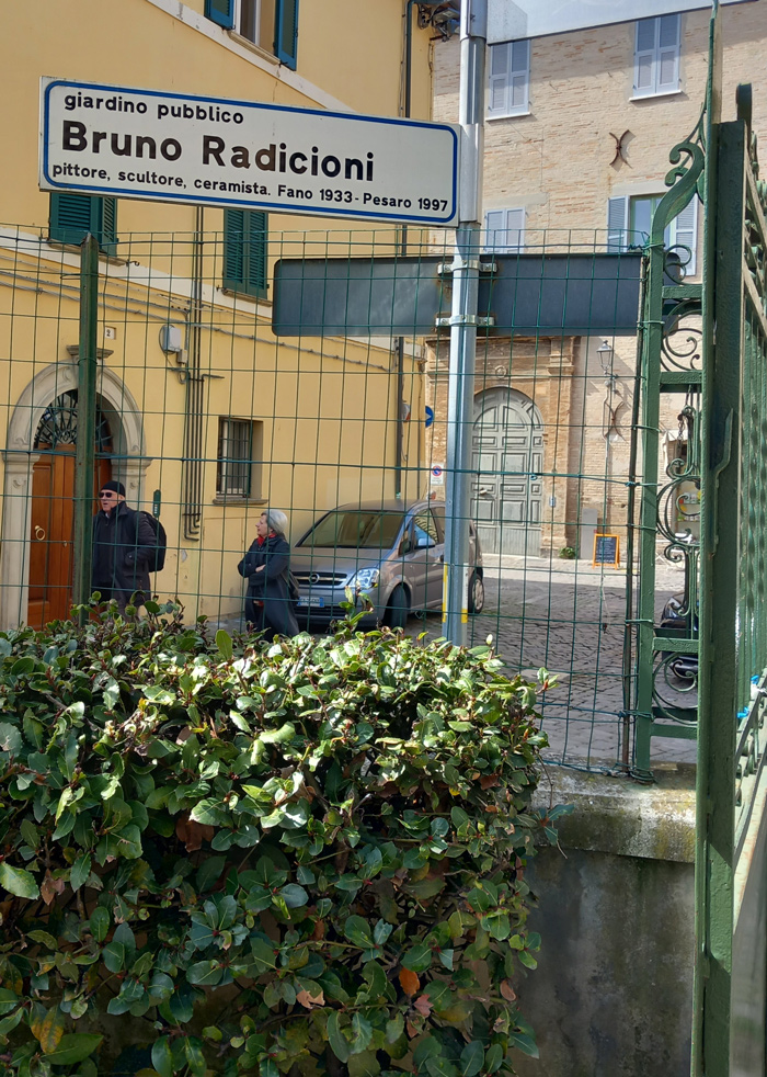 Questi giardini sono nati il primo a seguito all'eliminazione del primo Foro Boario e la costruzione della scuola Filippo Corridoni, gli altri con la demolizione del Mulino di Porta Maggiore e i lavori di scavo e reinterro lungo il tratto Bastione del Nuti - Mura Augustee - Rocca Malatestiana, in base al progetto di valorizzazione del 1926. Un minuscolo giardino pubblico sito nel centro storico dietro la Chiesa di Sant'Antonio, all'angolo tra Via Alessandrini e Via San Paterniano è stato realizzato verso il 2000 e dedicato al pittore fanese Bruno Radicioni.
