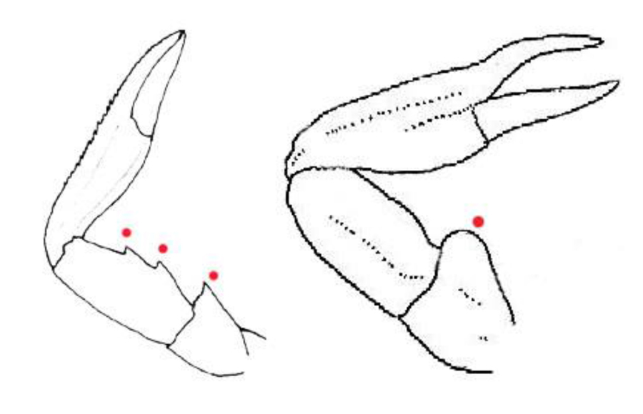 Caratteri distintivi: lunghezza del carapace 5 mm. Carapace tondeggiante, con alcune spine. Antenne molto lunghe e filiformi. Chelipedi lunghi e con spine. V paio di pereiopodi ridotto e tenuto sopra il carapace. Colore marrone chiaro o bruno-azzurrastro.