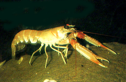 Vive da 20 a 400 m di profondità (più frequente a partire dai 200-300 m) su fondali fangosi, ove scava gallerie come rifugio.
