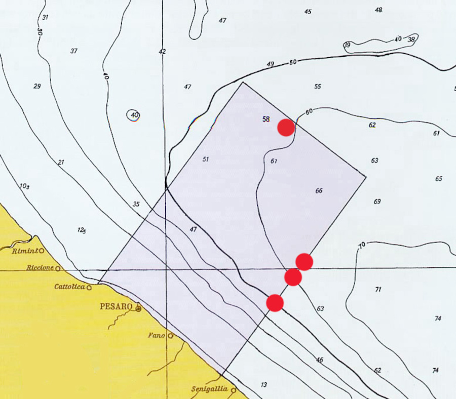 Dati accertati nella zona di studio (Adriatico antistante la Provincia di Pesaro e Urbino sino a 34,5 miglia al largo): tipo di dati: dati bibliografici. Frequenza di osservazione: specie comune. Segnalata come genericamente presente nella zona dei “fondi sporchi” (= ricchi di epifauna) al largo della Provincia di Pesaro e Urbino (SCACCINI & PICCINETTI, 1967). Pescata nel 1982 al largo della foce del Cesano in 3 stazioni di rilevamento a 50 m di prof. nel fondale fangoso e a 60-64 m in quello sabbioso-fangoso/fangoso molto sabbioso ricco di epifauna (campagna PIPETA, in ŠIMUNOVIĆ A., 1997). PICCINETTI et al. (2012) la indicano, in una carta della sua massima distribuzione spaziale elaborata con dati delle campagne MEDITS 1996-2010, al largo di Cattolica nella zona del fondale fangoso e al largo della foce del Metauro e del Cesano nei fondali fangoso e sabbioso-fangoso/fangoso molto sabbioso ricco di epifauna. Pescata nel 2012 al largo di Pesaro a 60 m di prof. presso le piattaforme Annalisa A e B, nel fondale sabbioso-fangoso ricco di epifauna (FABI et al., 2016b).