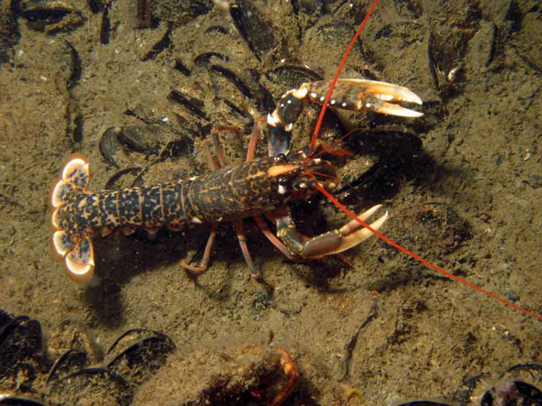 Caratteri distintivi: lunghezza totale 500-600 mm. Chele molto grandi, appiattite, di grandezza diversa. Corpo cosparso di macchie nero-bluastre su fondo chiaro.