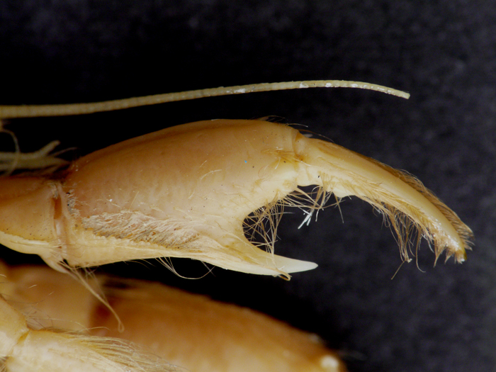 Caratteri distintivi: lunghezza totale 35 mm. Rostro ben sviluppato a bordo superiore dentellato; chelipede con propodio largo la metà della lunghezza, con dito fisso più corto della metà del dattilo e ben distanziato da esso. Colorazione bianco-verdognola.