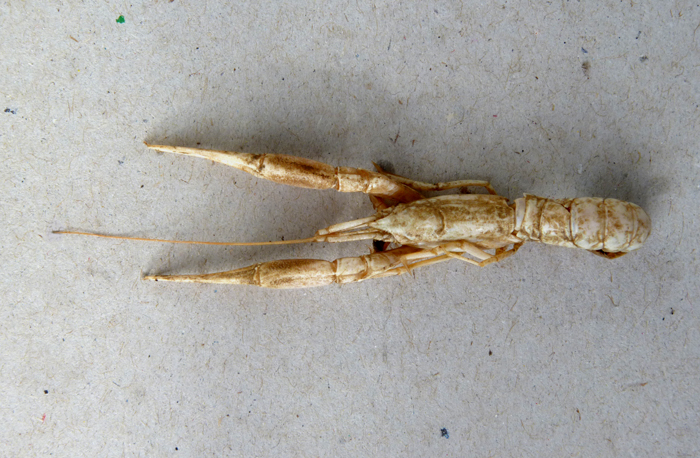 Caratteri distintivi: lunghezza totale 40-60 mm. Chele lunghissime, con dattilo un poco più lungo del propodio. Colore bianco-rosato.