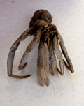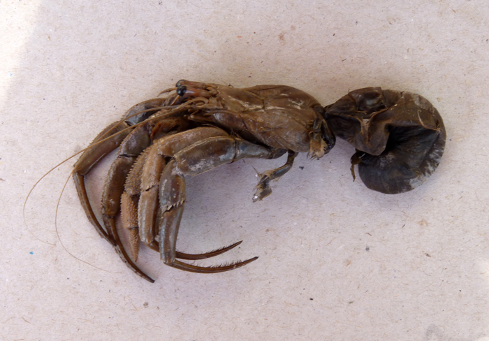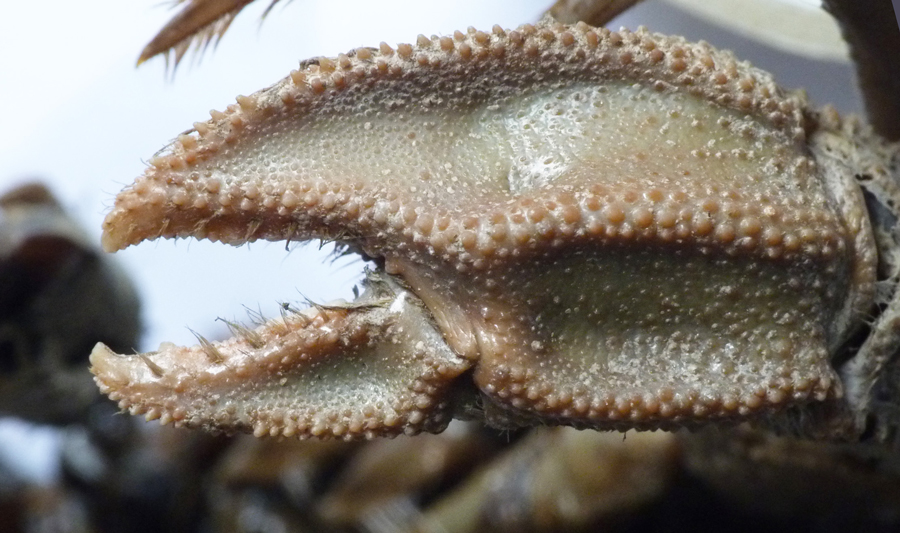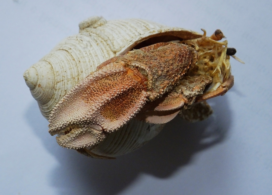Pagurus prideaux presenta sulla chela destra solo una modesta sporgenza longitudinale mediana.