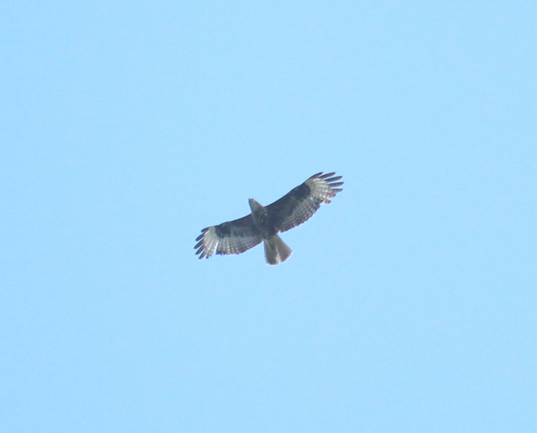 zona appenninica interna: in Comune di San Giustino (PG): Palazzetto appena fuori della zona di studio, un individuo il 19-10-2013 e Monte le Forche poco ad est di Bocca Trabaria, un altro il 22-9-2015 (GAGGI, inedito). Poiana codabianca morfismo scuro, 10-6-2014, M. Acuto (Gruppo del Monte Catria) lungo la traccia che parte da Bocca della Valle. Si tratta di un secondo anno con muta su primarie interne e timoniere centrali. E' una Poiana codabianca per i seguenti caratteri: testa grossa che sporge; proporzioni testa/ali/collo; coda con barrature fini senza banda terminale nera; barrature delle remiganti fino alla mano; piumaggio di corpo e copritrici tutto scuro e uniforme (conferma di Marco Borioni e Guido Premuda) (FANESI, com. pers.).