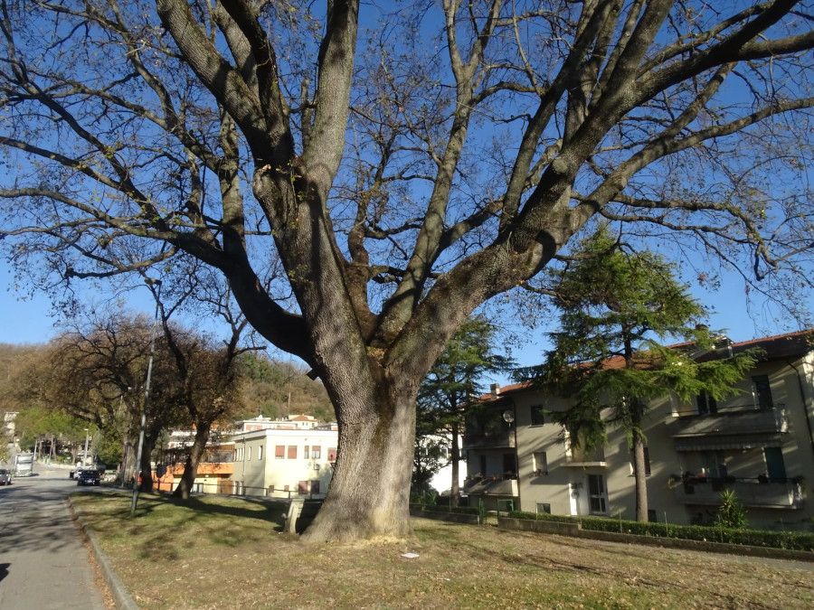 È all’estremità di un filare di roverelle inglobate nel tessuto urbano.