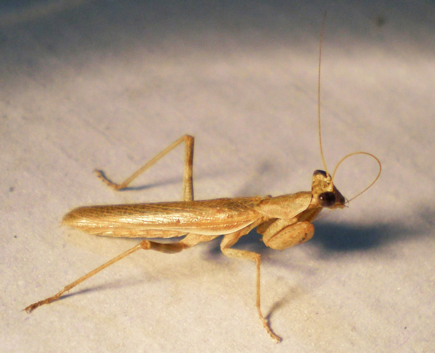 Morfologia: lunghezza 17-25 mm. E’ dotata di zampe raptatorie per catturare le prede. Il maschio è alato, mentre nella femmina le ali sono ridotte a vestigia. Inoltre quest’ultima mantiene l’addome sempre incurvato verso l’alto.