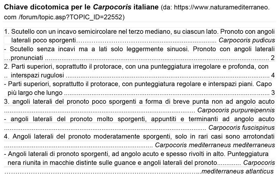 Per le differenze con gli altri Carpocoris vedi chiave dicotomica (da: https://www.naturamediterraneo.com /forum/topic.asp?TOPIC_ID=22552).