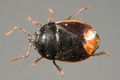 Morfologia: lunghezza 3,5-4,5 mm. Corpo ellissoideo, convesso sopra e sotto, lucido, fortemente punteggiato, glabro. Colore nero; margini delle elitre bianco-giallastri; tarsi e primi 2 articoli delle antenne rossicci. Capo più largo che lungo, davanti agli occhi con margine spigoloso e all’estremità con una breve, ma netta incisione; occhi molto sporgenti; ocelli 2; antenne abbastanza lunghe, di 5 articoli che sono progressivamente più lunghi e spessi verso l’apice. Pronoto molto più largo del capo, alla base largo circa quanto la base elitrale, subtrapezoidale; margine anteriore incavato; margini laterali e basale arrotondati e ribordati. Emielitre brevi, arrotondate; scutello molto grande, superante la metà delle emielitre, triangolare, arrotondato all’apice; membrana trasparente. Zampe snelle; tibie con numerosi aculei; tarsi molto brevi, di 3 articoli.