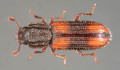 Morfologia: lunghezza 2,6-3,5 mm. Corpo molto allungato, semicilindrico, di sopra convesso, opaco, granuloso, con fitta pelosità. Colore bruno nerastro; tarsi, tibie e antenne rossicci; elitre rosse con una macchia bruno-nerastra a forma di croce, il cui braccio orizzontale è molto più largo dell’altro. Capo più largo che lungo; appiattito, molto granuloso; occhi grandi, subrotondi, un po’ sporgenti; antenne di 11 articoli, molto brevi, inserite sotto una sporgenza della fronte; gli ultimi 3 articoli formanti la clava. Pronoto circa tanto lungo che largo, con 2 forti carene longitudinali, ribordato ai lati; questi quasi paralleli e un po’ ristretti verso la base; margini anteriore e posteriore quasi diritti; angoli anteriori sporgenti e acuti; angoli posteriori retti. Elitre a lati paralleli, con strie fortemente punteggiate, interstrie, a intervalli alterni, rilevate a forma di carena; omeri sporgenti; alata. Zampe corte; tarsi di 5 articoli.