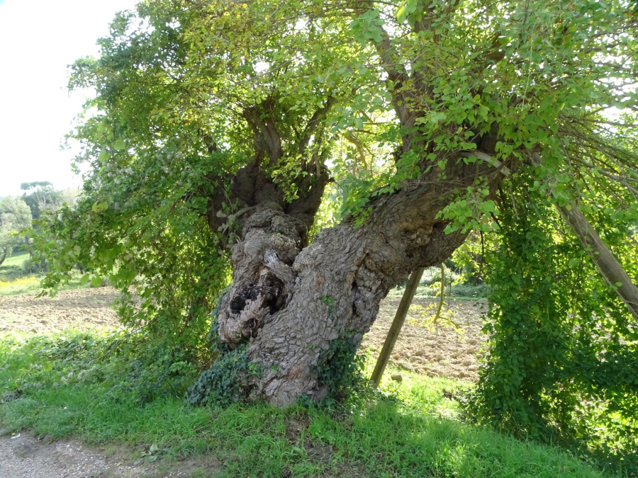 Nel 2018 il gelso era crollato a terra. Era caduto ma non schiantato, la maggior parte del suo apparato radicale non si era spezzata. Qualcuno organizzò una raccolta di fondi necessari per rialzare il fusto. Ecco il testo della sottoscrizione (1): “Un maestoso Gelso di quattrocento anni [probabilmente l’età reale è inferiore, NdA], in località Gazza di Carignano (Fano PU), a causa del maltempo e del cedimento del ciglio stradale, è caduto su se stesso. Fortunatamente le radici compromesse sono poche e la maggior parte è rimasta interrata e ben ancorata, continuando a nutrire la pianta. Ci stiamo adoperando per raddrizzarlo e riporlo a dimora. Per poter dire che un pezzetto di nuova vita di nonno Gelso è anche merito tuo, ti chiediamo un contributo. GRAZIE”¹