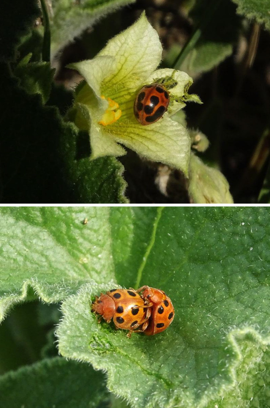 Ecologia e biologia: è una delle poche specie di coccinelle fitofaghe; si rinviene abbastanza frequentemente su varie Cucurbitaceae sia coltivate (Melone, Zucca, Anguria, ecc.) che spontanee; in particolare ha una preferenza alimentare per il Cocomero asinino (Ecballium elaterium). La specie compie l’intero ciclo vitale sulla pianta “nutrice”, per cui sulle sue foglie e fiori si possono osservare contemporaneamente adulti e larve. Sverna come adulto sulla pianta ospite, trovando riparo tra le pieghe delle foglie, ma nelle giornate invernali miti torna attiva.