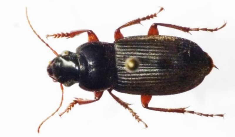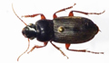 Morfologia: lunghezza 11-16 mm. Corpo quasi completamente nero e lucido, zampe e antenne rosso-marroni; le elitre sono percorse da nove linee ciascuna, ben visibili. Determ. GUBELLINI.