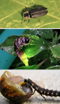 Le Lucciole (Luciola italica, L. pedemontana (= L. lusitanica), Lampyris noctiluca e L. fuscata) sono Coleotteri della famiglia Lampiridi, ben noti anche ai bambini perché di notte emettono luce. In Luciola si notano al buio soprattutto i maschi in volo che emettono luce intermittente, mentre le femmine pur possedendo le ali di norma non volano ed emettono luce intermittente solo in risposta ai maschi; per questo motivo sono osservabili solo di rado. In Lampyris i maschi, con superficie fotogena limitata nell’estremità dell’addome, volano e sono difficilmente identificabili, mentre le femmine prive di ali e di aspetto larviforme si osservano facilmente perché emettono una luce intensa e fissa. Le larve di Luciola rispetto a quelle di Lampyris sono più snelle e più piccole, di colore scuro senza punti rosati laterali lungo il corpo come queste ultime. Si trovano sotto i tronchi e le cortecce e sulla lettiera specialmente negli ambienti più umidi, ma sono meno mobili di quelle di Lampyris e quindi più difficilmente rinvenibili (FANTI, 2022) (1). Entrambe le larve si cibano di chiocciole e di limacce alle quali iniettano un liquido che prima ha un effetto anestetizzante e poi scioglie i tessuti della preda in maniera da poter essere ingeriti.