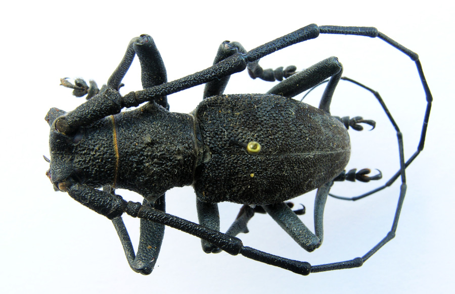 Morfologia: lunghezza 15-38 mm. Corpo grande, molto robusto, coriaceo, con pelosità finissima, fitta su torace, elitre e antenne; capo, torace, antenne e zampe scabri, elitre granulose. Colore nero-grigiastro, elitre con 4 macchie poco evidenti di peli neri. Capo più lungo che largo, grande, poco più stretto del torace, molto rugoso; mandibole molto robuste; occhi grandi e molto incavati al lato interno; antenne lunghissime, di 11 articoli, superanti la lunghezza del corpo, più lunghe nel maschio; 1° articolo lungo e molto spesso. Torace poco più largo che lungo; margini anteriore e posteriore quasi diritti; margini laterali al centro con un forte dente acuto; parte centrale del pronoto con 3 piccoli rilievi. Elitre poco allungate, saldate fra loro, con fittissimi granuli arrotondati, lucidi e neri; lati arrotondati; base arrotondata; omeri sporgenti; ali assenti. Zampe lunghe, robustissime; tibie medie con un dente esterno sotto la metà; tarsi di 4 articoli; 3° articolo profondamente bilobo.