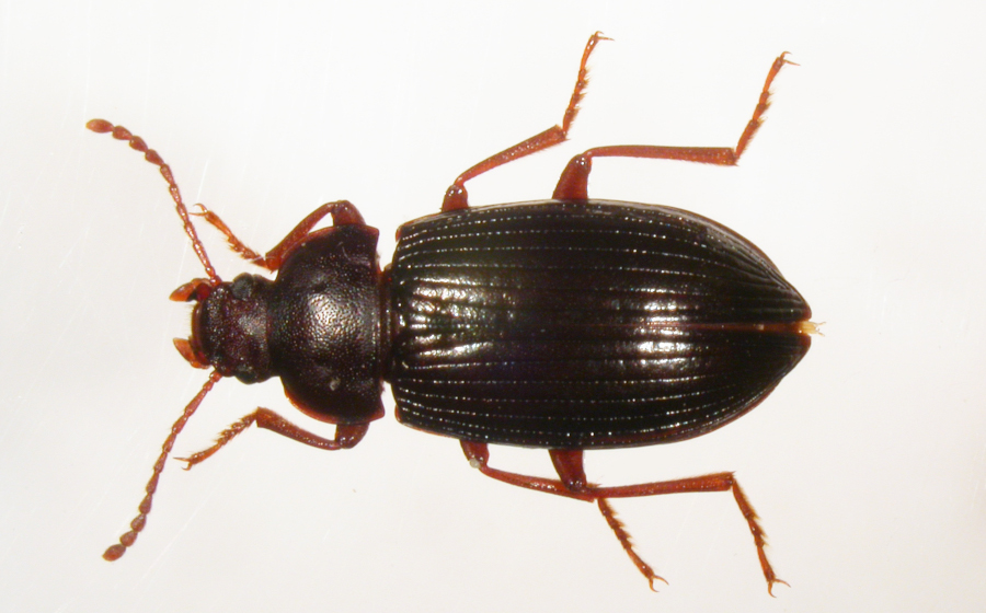 Morfologia: lunghezza 8-9 mm. Corpo allungato, molto convesso di sopra, piatto di sotto, glabro, zampe e antenne pelose, finemente zigrinato. Colore marrone più o meno scuro. Capo e torace fittamente punteggiati, elitre meno. Capo più largo che lungo, depresso; occhi grandi, ellissoidali, un po’ sporgenti; mandibole corte e robuste; ultimo articolo dei palpi mascellari molto grande, triangolare; antenne lunghe, di 11 articoli; antennomeri 3-6 con ciuffi di lunghe setole all’apice; 2° articolo molto più lungo degli altri. Pronoto molto più largo che lungo, subrettangolare, ribordato; margine anteriore diritto al centro e piegato in avanti verso gli angoli anteriori; margini laterali arrotondati e con largo bordo piatto; margine posteriore sinuato e, al centro, sporgente verso lo scutello. Elitre molto allungate, con la massima larghezza dopo la metà, con 8 strie più 1 stria marginale punteggiate. Zampe lunghe, snelle; tarsi anteriori e mediani di 5 articoli, i posteriori di 4.