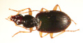 Morfologia: lunghezza 5,9-6 mm. Corpo snello, glabro, opaco, con finissima microscultura, finemente zigrinato. Colore bruno scuro; vertice del capo e margini laterali delle elitre più o meno rossicci; epipleure delle elitre (= parte che ricopre lateralmente l’addome) rosso-brune o giallo-brune; antenne, palpi e zampe giallo-pallidi. Capo più lungo che largo, più stretto del pronoto; fronte con 2 deboli e brevi solchi longitudinali; antenne molto lunghe, di 11 articoli; occhi grandi e un po’ sporgenti. Protorace più lungo che largo, ristretto dopo la metà, convesso, con un sottile solco longitudinale mediano; davanti alla base con fitta punteggiatura più profonda ai lati; margine anteriore ribordato e concavo; margine posteriore arrotondato; margini laterali arrotondati e ribordati; angoli anteriori sporgenti e ottusi; angoli posteriori sporgenti brevemente all’infuori con un dente. Elitre convesse, allungate, lunghe il doppio del pronoto, con la massima larghezza alla metà, fortemente zigrinate all’apice, con 8 strie lisce e complete oltre alla stria marginale e a quella scutellare; omeri sporgenti e arrotondati; terza interstria con 2 punti setigeri; alato. Zampe lunghe, snelle; tarsi di 5 articoli, solcati di sopra lungo la linea mediana, gli anteriori dilatati nel maschio.