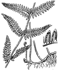 Felce perenne (G rhiz) alta 20-80 cm. Si può confondere con altre felci di aspetto simile, ma il suo habitat legato all’acqua è indicativo.