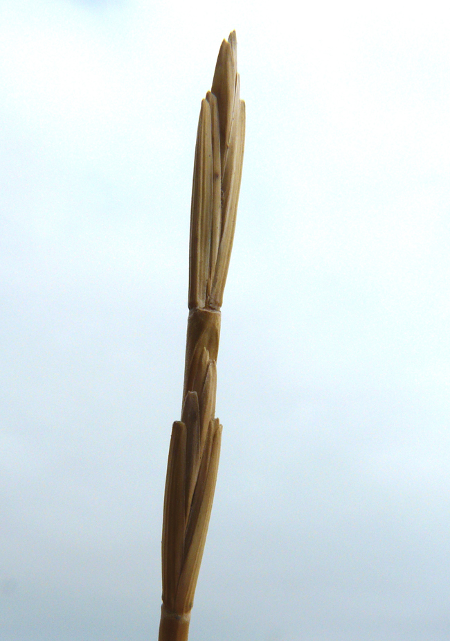Pianta erbacea perenne (G), psammofila, alta 30-70 cm, con foglie e fusto bianco-verdastri, spiga allungata con spighette di 17-30 mm disposte alternativamente sulla rachide su due file abbastanza rade. Fiorisce in giugno-luglio.