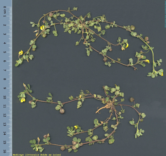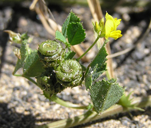 Pianta erbacea annuale (T) dei litorali sabbiosi, con legumi a disco, spiralati e con margini spinosi.