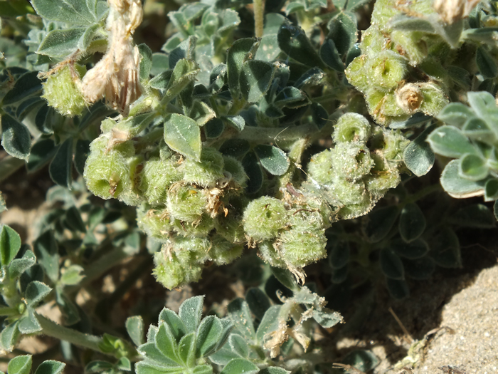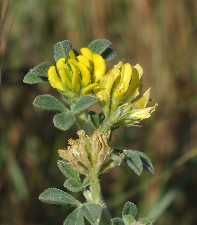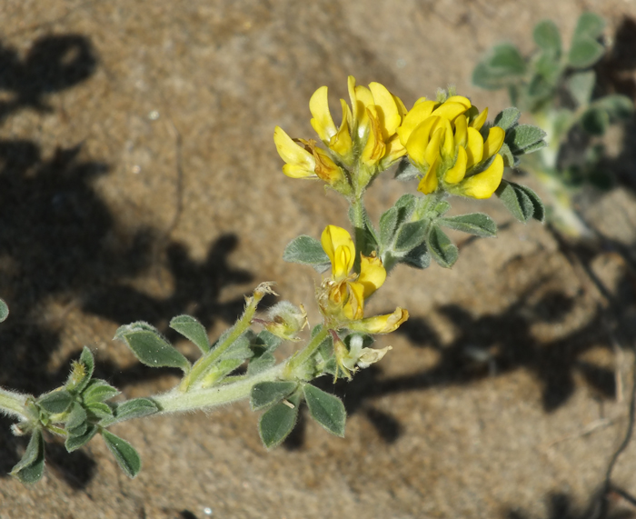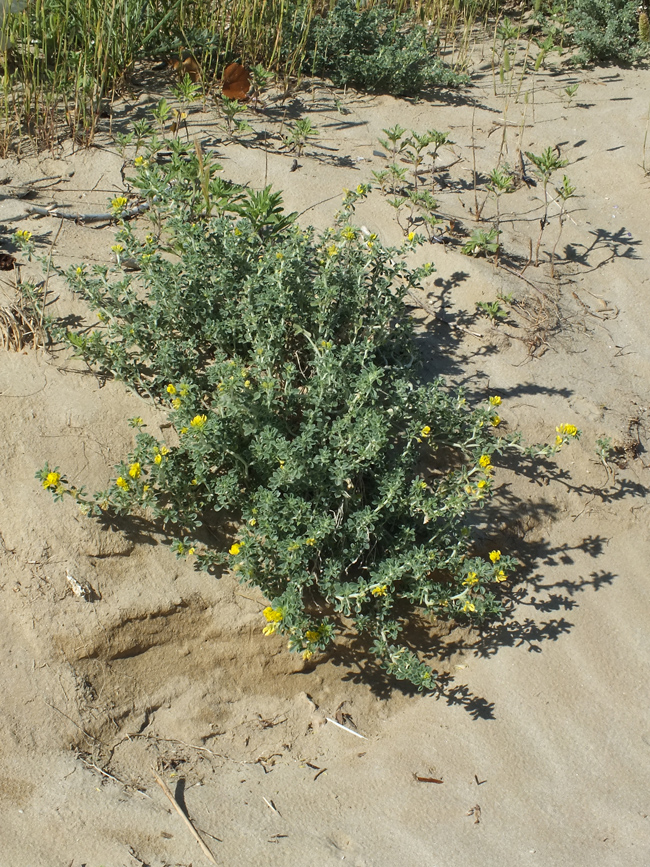 Pianta lignificata alla base (C), tipica specie alofila e psammofila a portamento prostrato, che forma larghi cuscinetti sull'arenile non consolidato. Le sue foglie sono piccole, ricoperte da una fitta peluria biancastra, i fiori gialli, i legumi foggiati a chiocciola. Fiorisce da aprile a luglio.