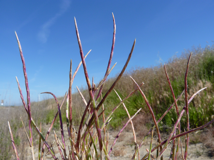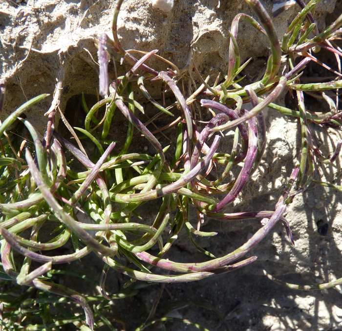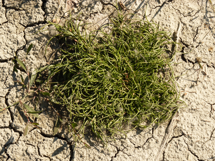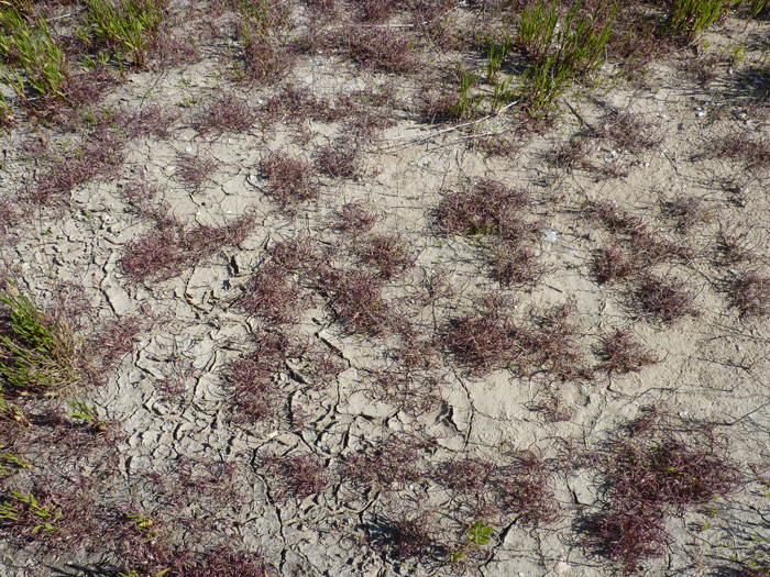 Nella zona di studio (litorale della Provincia di Pesaro e Urbino): poco comune, in luoghi subsalsi da ± umidi a temporaneamente asciutti del piano planiziale, nella zona litoranea (Spiaggia di Baia del Re nell'arenile consolidato il 30 maggio 1971, zona antropizzata alla foce del Fosso Sejore tra Pesaro e Fano e retrospiaggia ghiaioso alla foce del Metauro il 19 maggio 1986 - Erbario POGGIANI, determ. BRILLI-CATTARINI, spiaggia ghiaiosa a NO della foce del Metauro l'11 maggio 1987 e spiaggia sabbiosa a Metaurilia di Fano l’11 maggio 1987 - Erbario POGGIANI; terreno con fanghi marini di riporto e pozze temporanee presso il Porto di Fano nel giugno 2010 e maggio 2011, terreno con argilla di riporto nel Lago Vicini lungo il Metauro a 1 km dalla foce nel giugno 2011 - settembre 2012 e spiaggia ghiaiosa vicino al laghetto a NO della foce del Cesano in Comune di Mondolfo il 14 giugno 2013) (osservaz. generali 1971-2025 - POGGIANI).