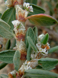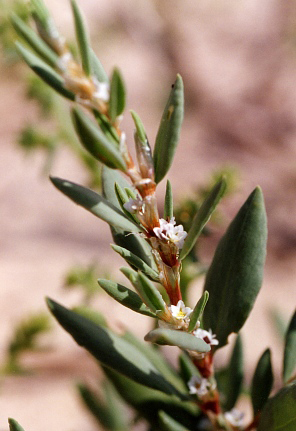 Pianta erbacea perenne (H) psammofila e nitrofila di spiagge sabbiose marine, che forma un cespo di 10-40 cm con fusti sdraiati al suolo. Foglie ovali-lanceolate e coriacee, fiori di 3-4 mm bianco-rosati in fascetti ascellari, da aprile ad agosto, frutti ad achenio di 4-5 mm, lisci e lucenti.