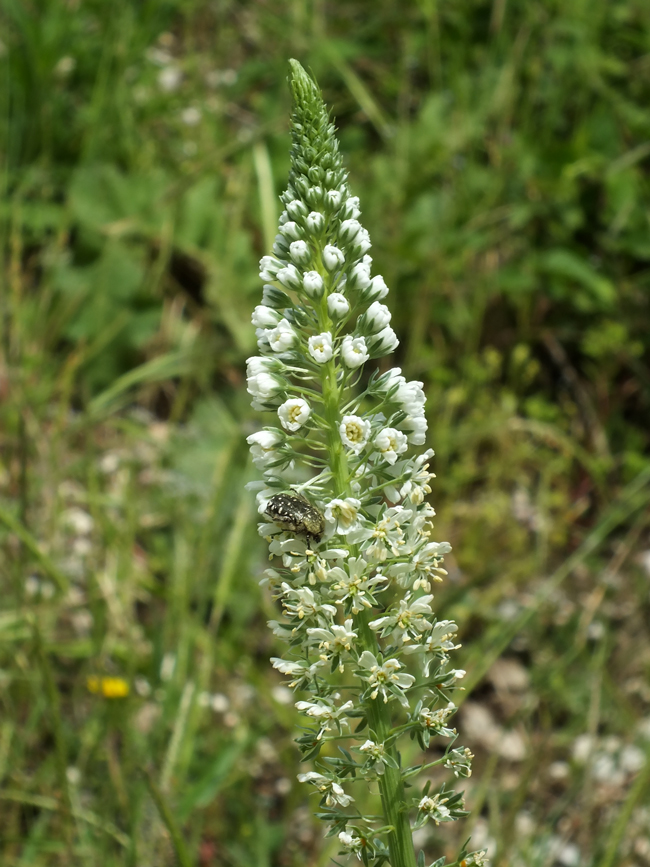 Pianta erbacea annuale, biennale o perenne (T, H) a portamento eretto, alta circa un metro, con fiori bianchi, piccoli e odorosi, raccolti in un lungo e denso racemo, da aprile a attobre.