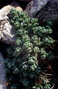 Sui tetti e le grondaie è frequente l'Erba pignola (Sedum album).