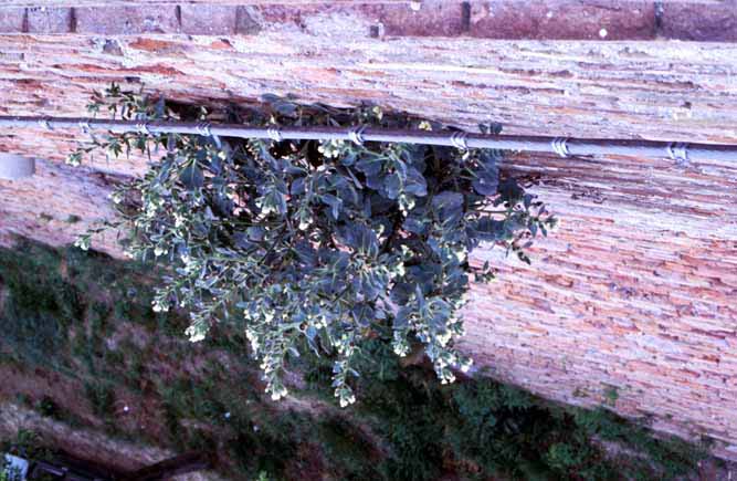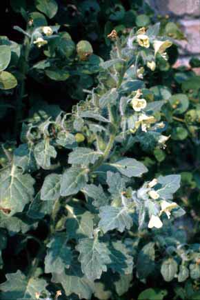 Pianta erbacea annuale, biennale o perenne (T, H) di 20-80 cm, con foglie ovali, picciolate, a margine grossolanamente dentato, pelose e di colore verde-glauco. I fiori sono imbutiformi, giallastri; il frutto è una capsula. Cresce su ruderi e vecchi muri.