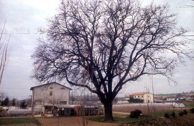 Presenta una circonferenza di m 4,35 a petto d'uomo. Nel 2001 una parte dei grossi rami risulta secca, rovinata dai parassiti e in parte troncata.