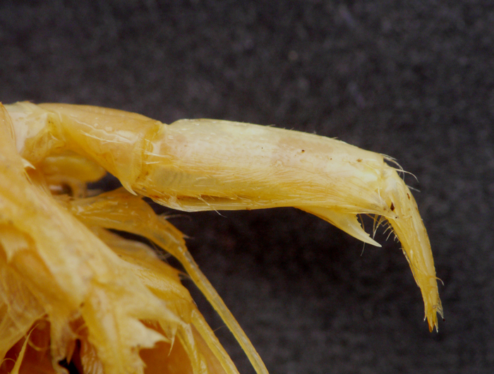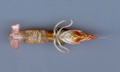 Caratteri distintivi: lunghezza totale 40 mm. Rostro ben sviluppato a bordo superiore dentellato; chelipede con propodio largo 1/3 della lunghezza, con dito fisso più corto della metà del dattilo e che si allontana poco da esso. Colorazione rosata.